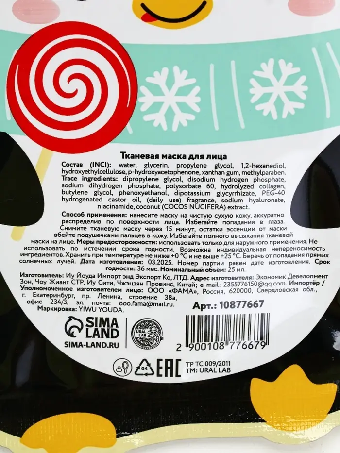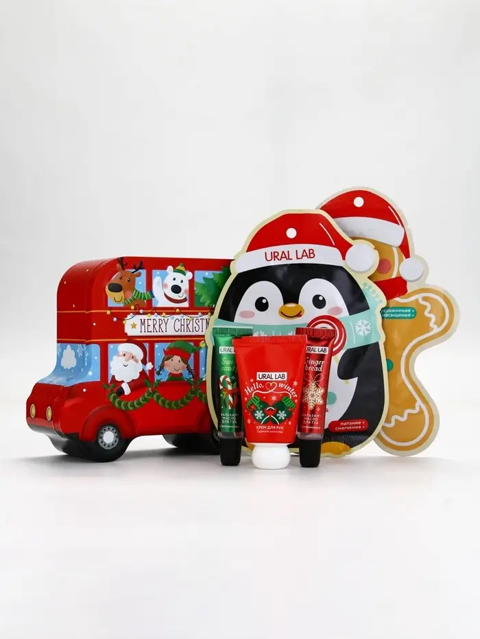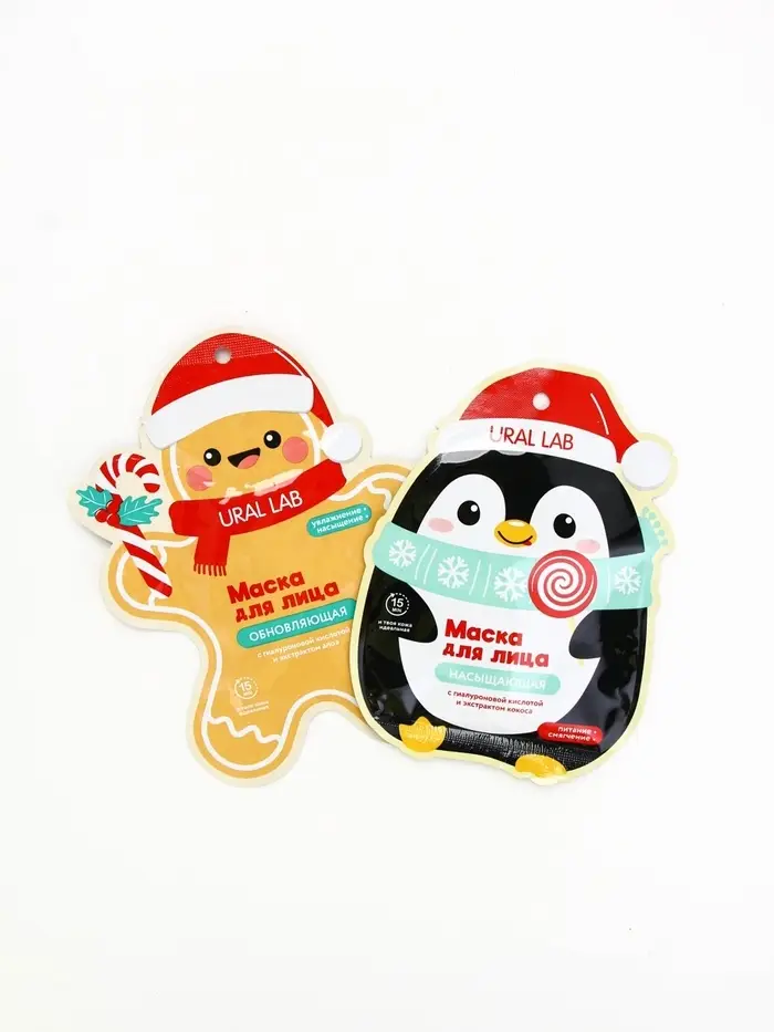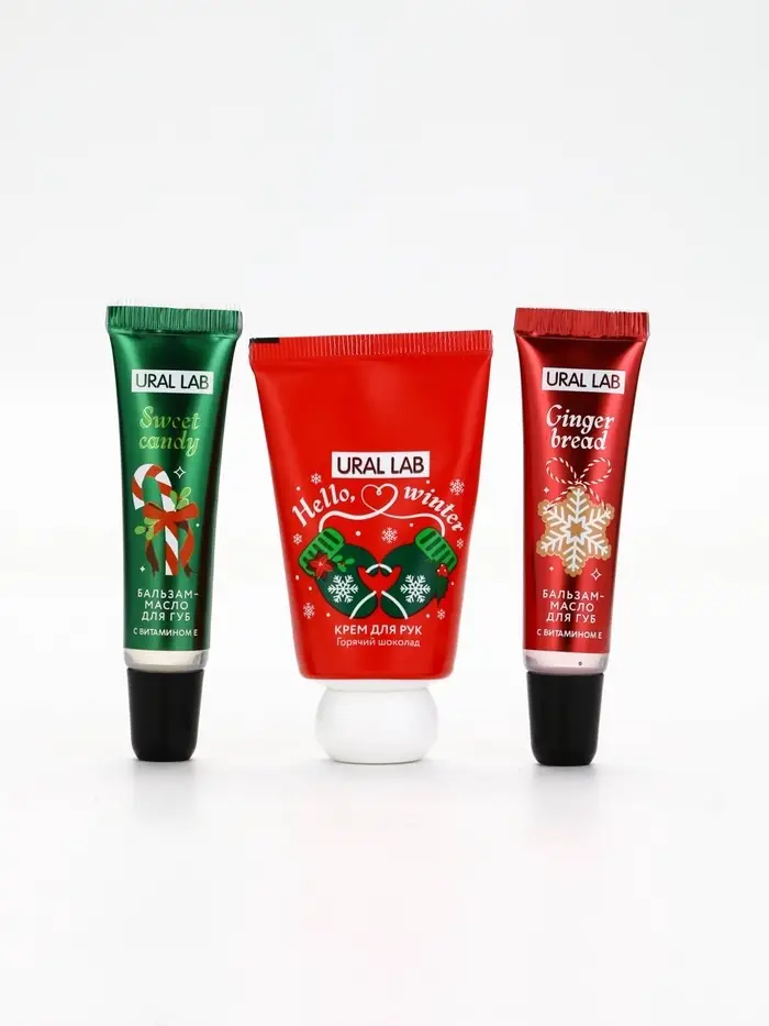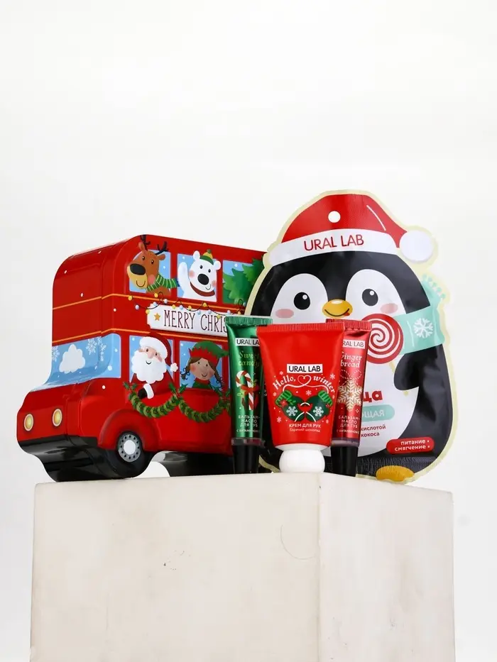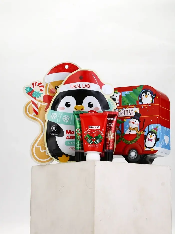 Новогодний подарочный набор косметики: маска для лица 2 шт, крем для рук и бальзам для губ, URAL LAB