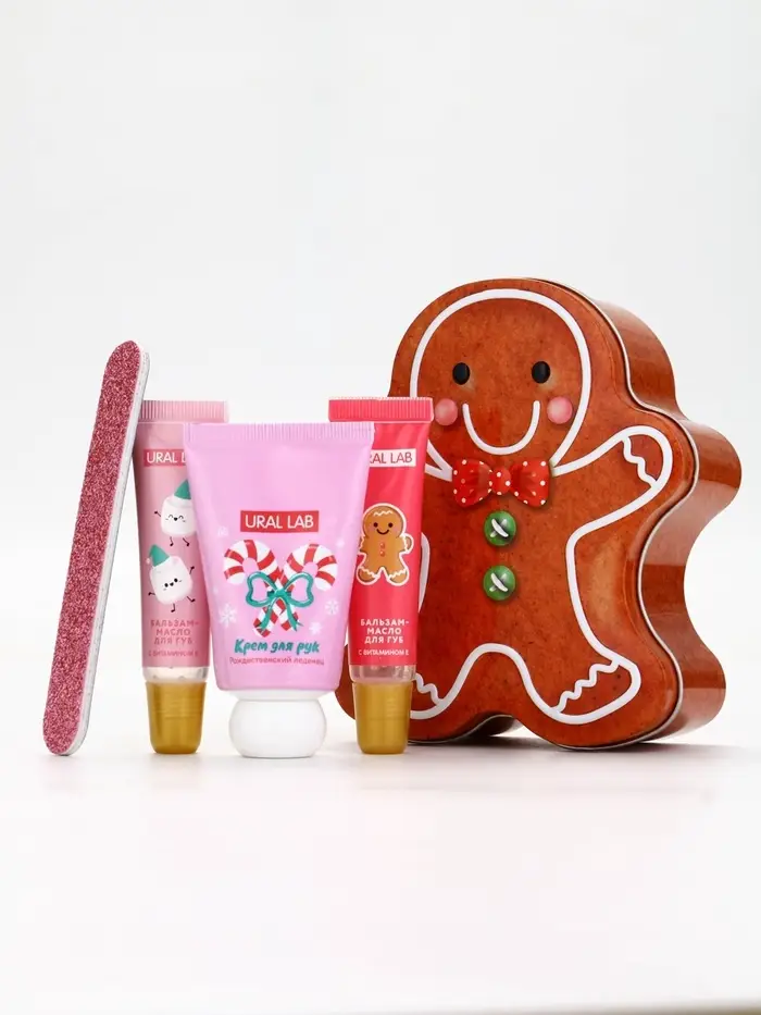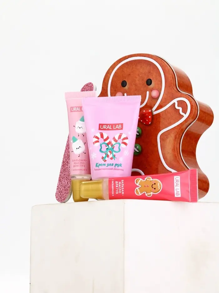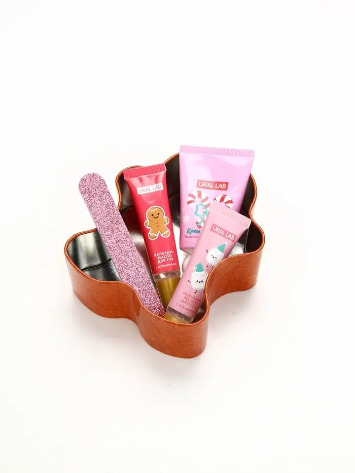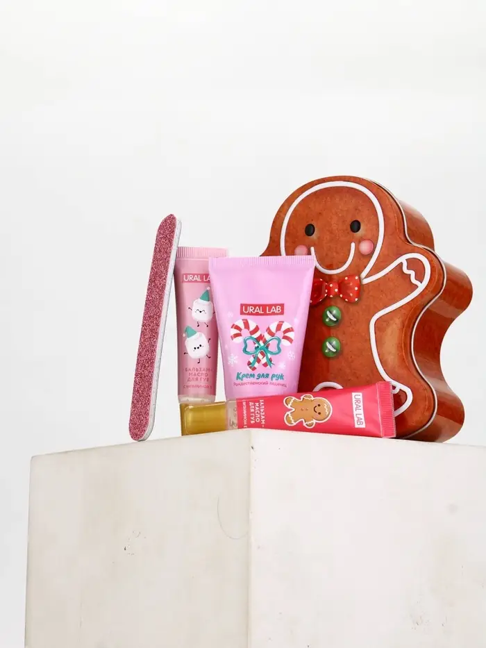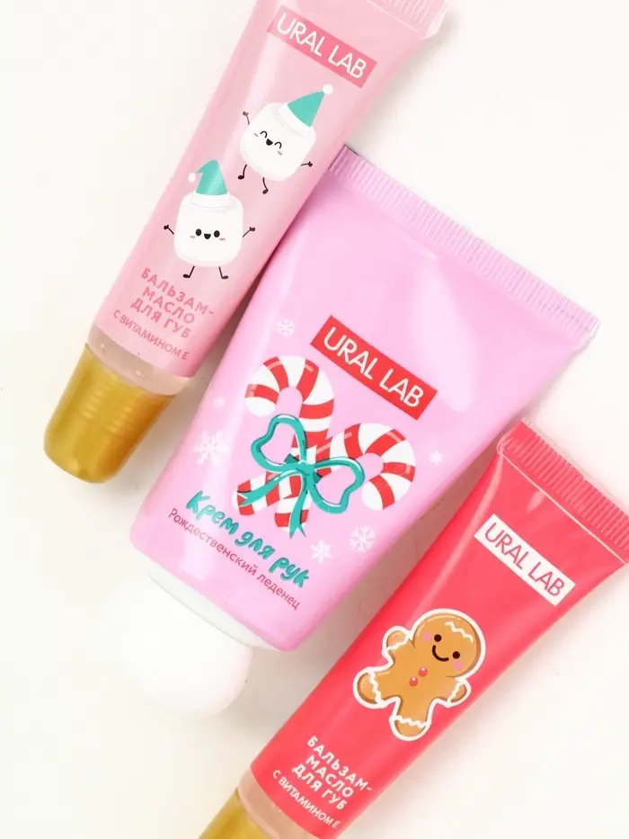 Новогодний подарочный набор косметики: крем для рук, бальзам для губ, пилочка для ногтей, URAL LAB
