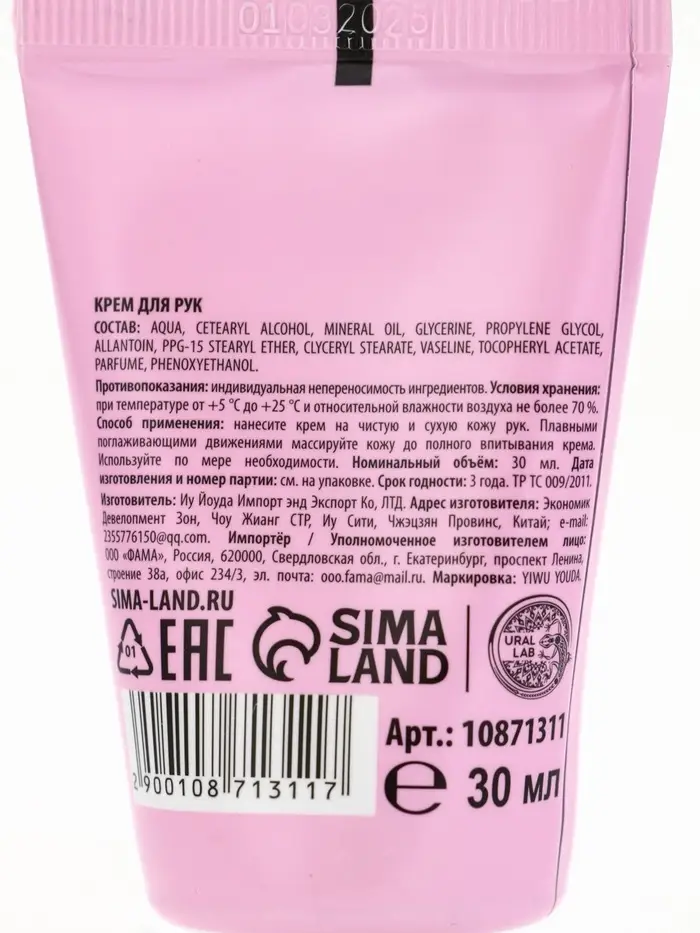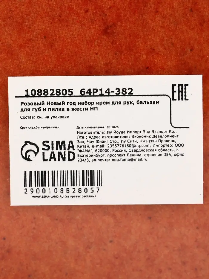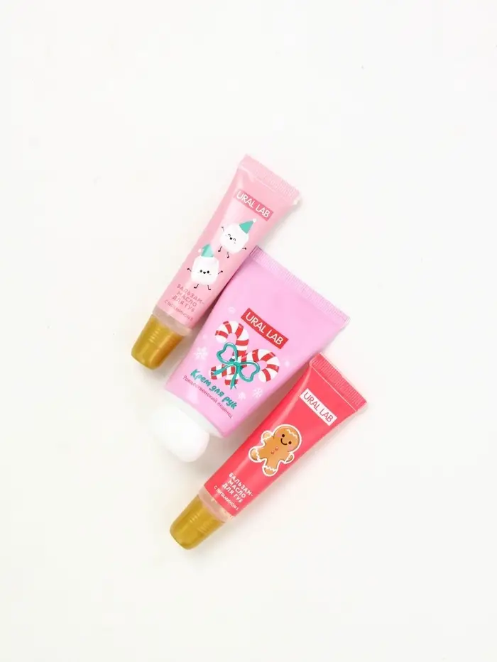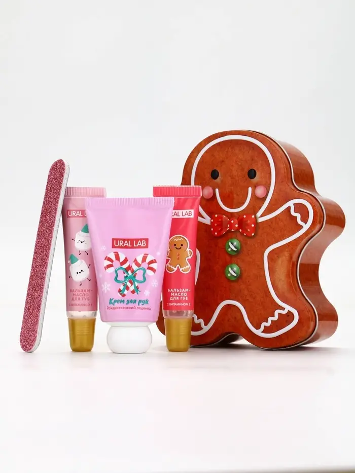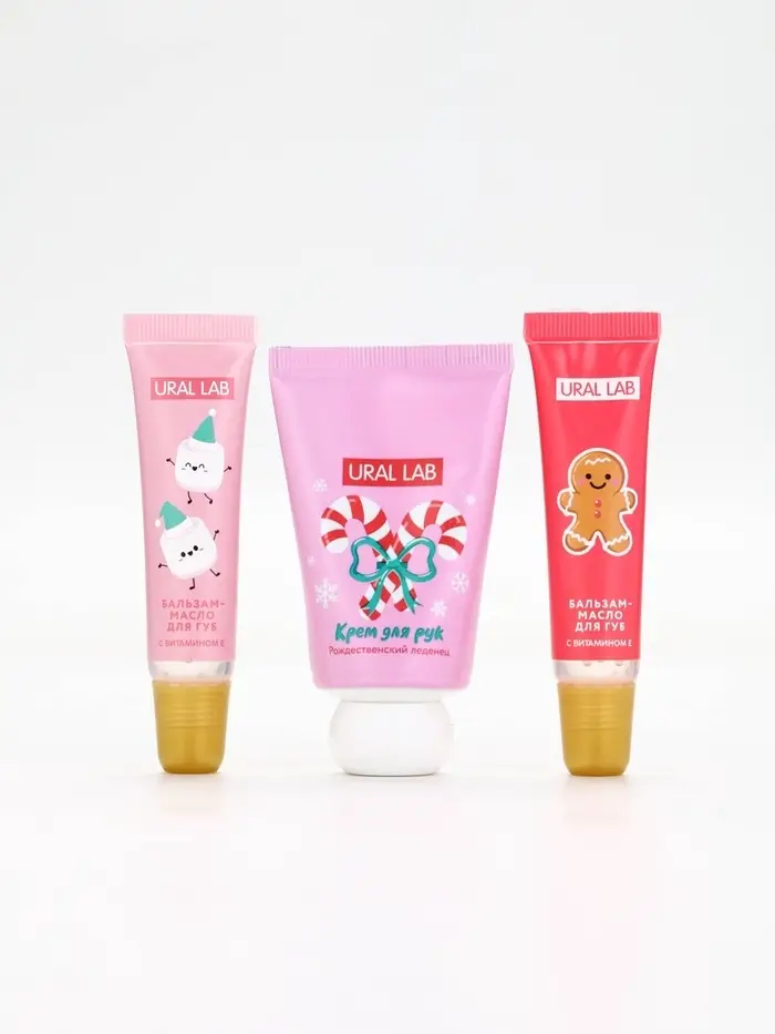 Новогодний подарочный набор косметики: крем для рук, бальзам для губ, пилочка для ногтей, URAL LAB