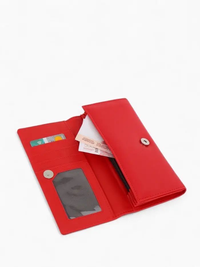 Кошелек жен 06-01-01 Июнь2523, 19*3*10см, 3 отд+отд/молн, д/карт, д/монет, на магните красн