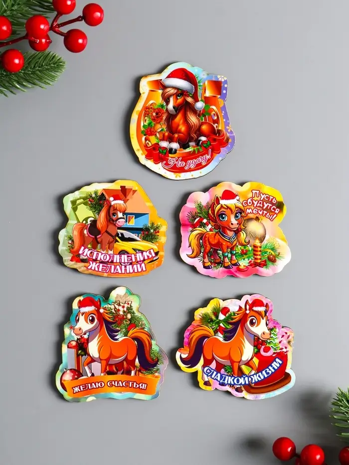 Набор магнитов новогодних «Новый год - 1», 5 шт., размер магнита 7 см