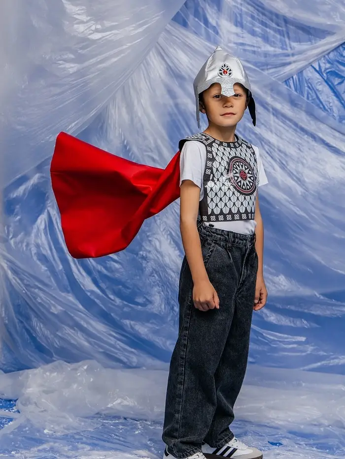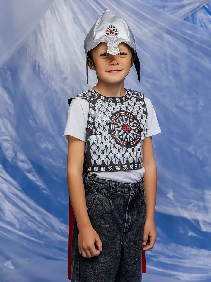 Карнавальный костюм детский «Богатырь Добрыня»: болеро, жилет, шлем, р. 110-122