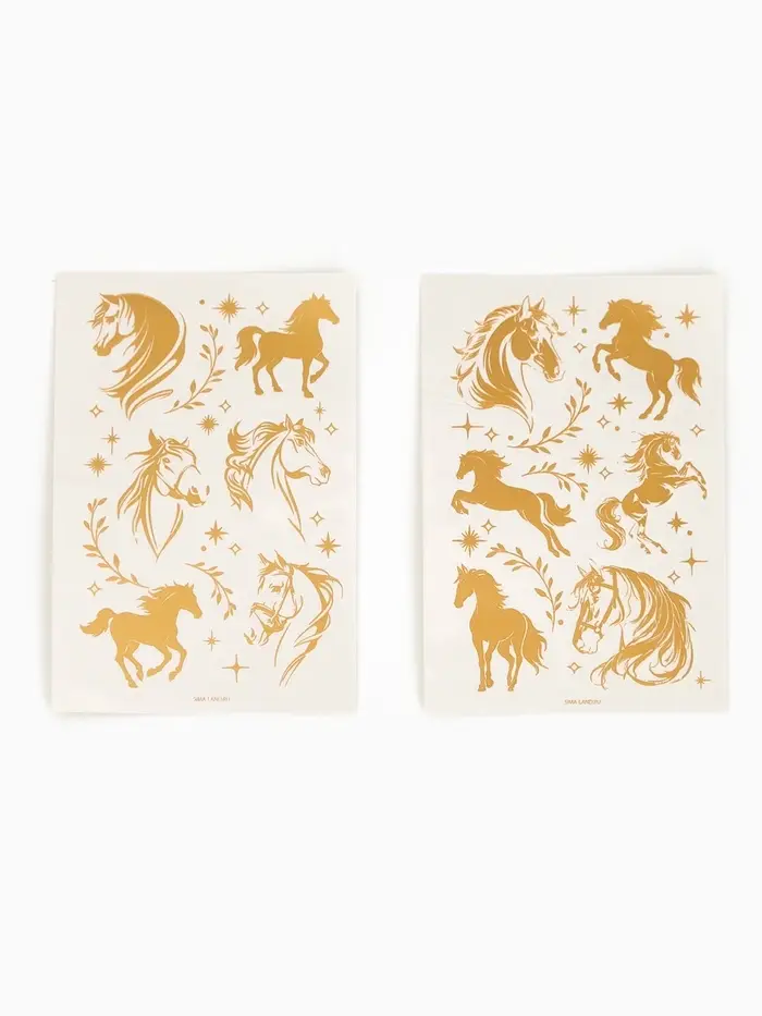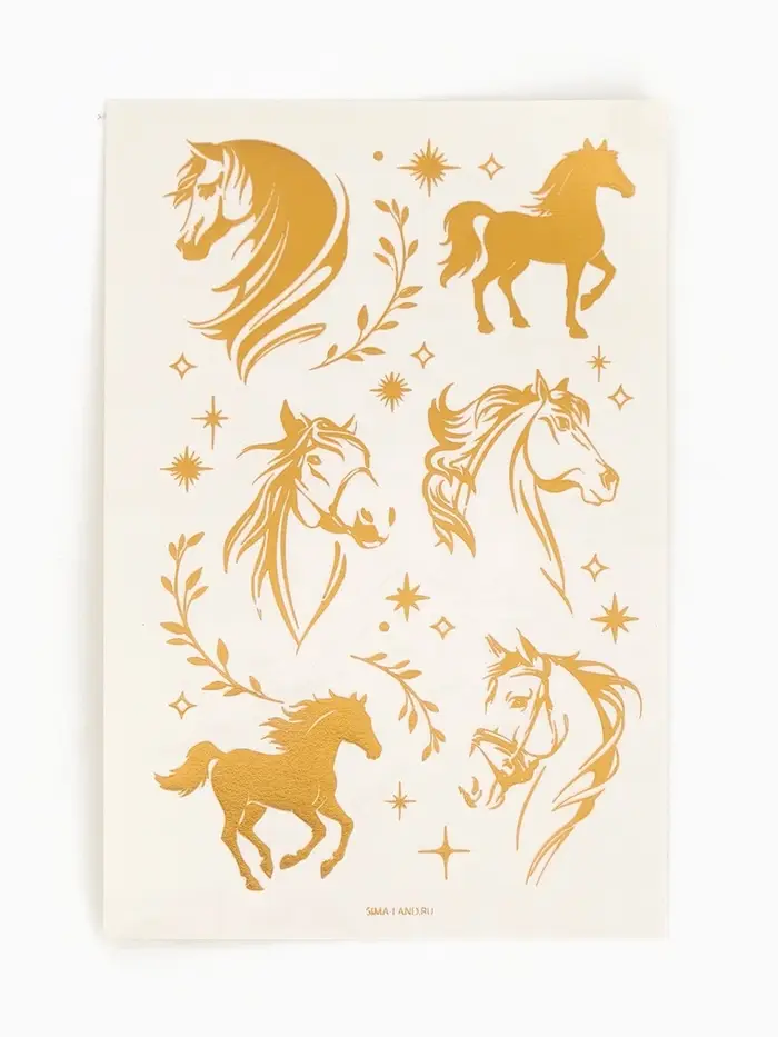Переводные тату Золотые лошадки, 2 листа