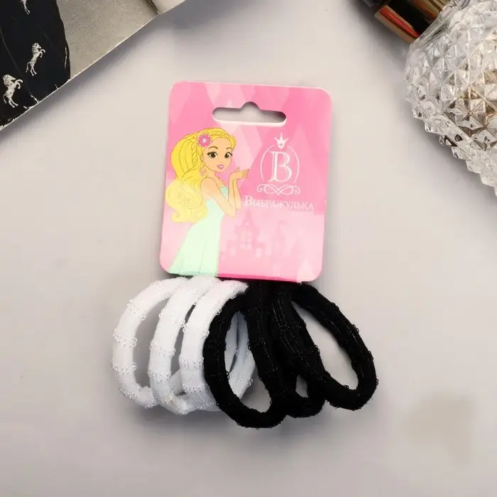Резинки для волос «Махрушка спорт», набор 6 шт., петельки блеск, 4.5 см, чёрно-белые