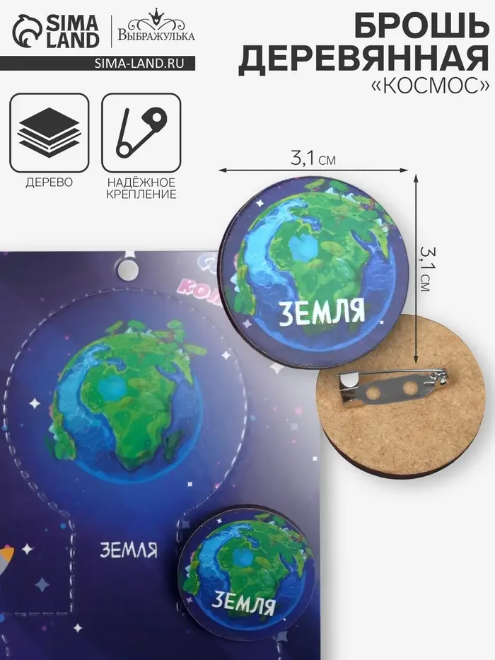 Небольшая, но выразительная брошь из дерева с изображением Земли в зелёно-голубых тонах привлекает внимание своей естественной текстурой и оригинальностью. Размер 3,1 см делает её аккуратным аксессуаром, который подойдёт как девочкам, так и взрослым, ценящим стильные и необычные детали в образе.