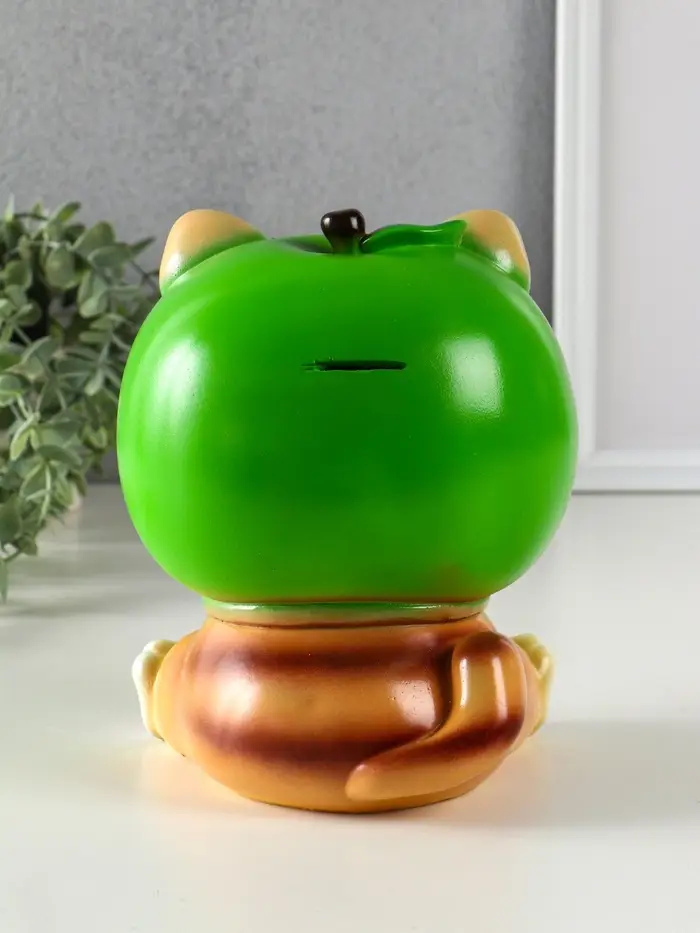 Копилка "Кот в костюме яблоко"зелёный, 21х17х17 см