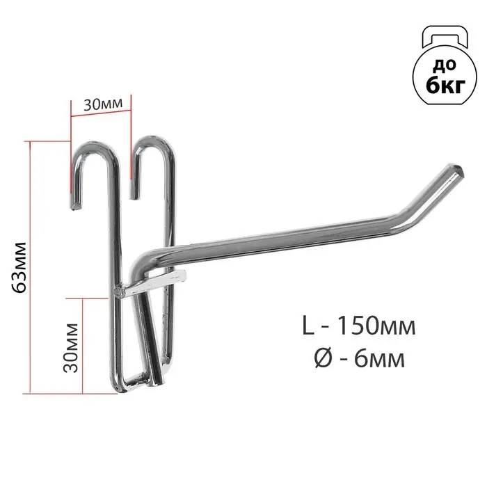 Крючок на сетку одинарный, d=6 мм, L=14 см, цвет хром