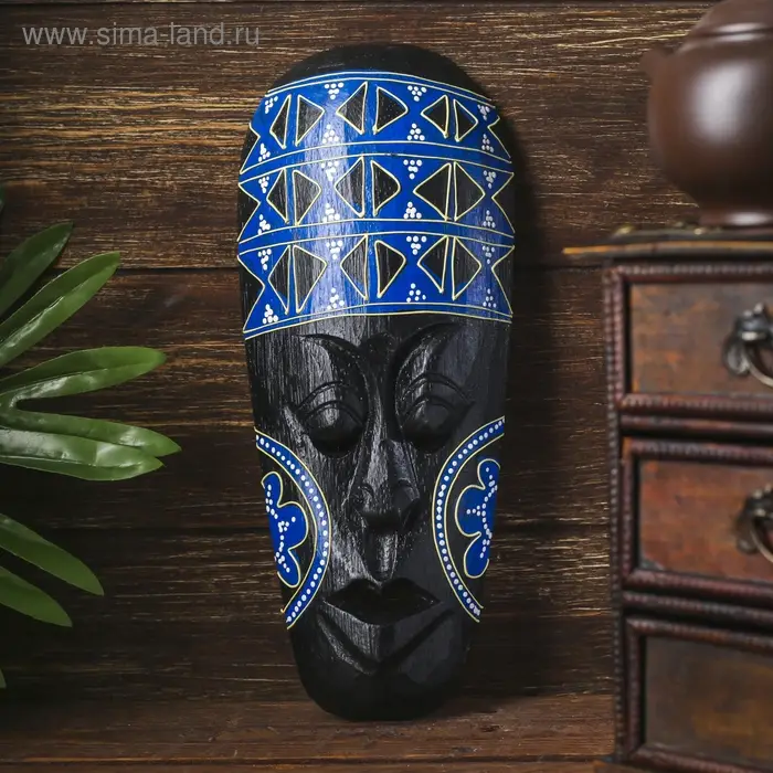 Маска настенная дерево "Абориген с геометрическим узором" 2х10х25 см