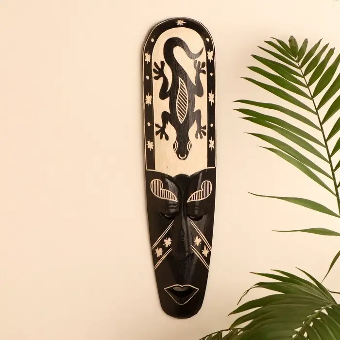 Маска настенная дерево "Абориген с гекконом" 3х12х50 см