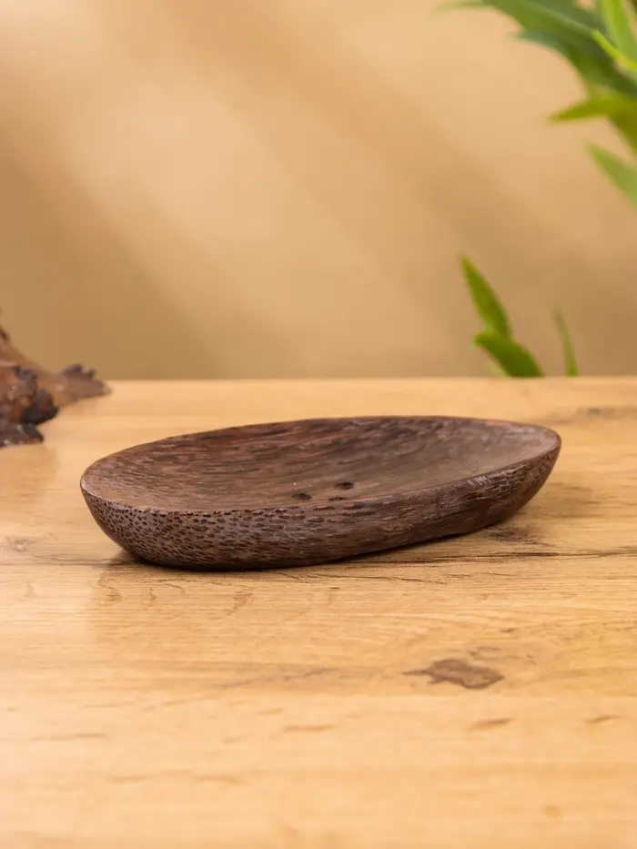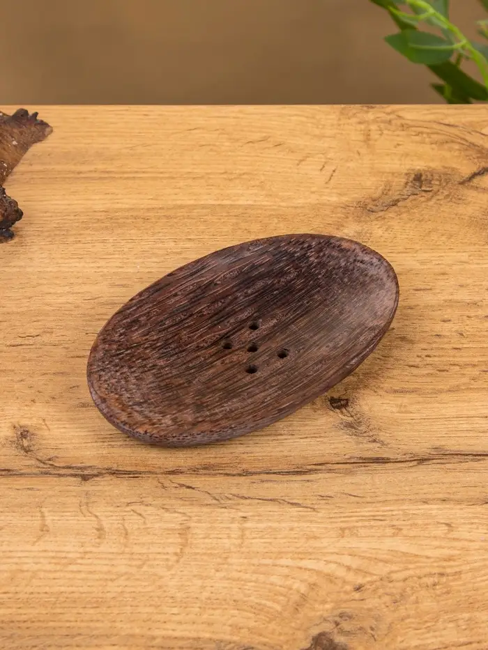 - Натуральный материал — кокос: Каждая мыльница имеет уникальную текстуру и оттенок, потому что сделана вручную из настоящей скорлупы. Это не просто аксессуар, а часть природы в вашем доме. Материал устойчив к влаге и долговечен.