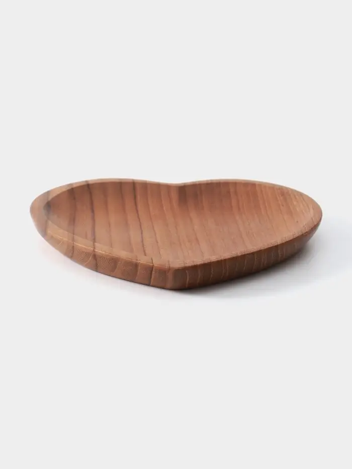 Сердце из тёплого дерева на вашем столе Деревянная тарелка-сердце из тика, 16 см — это больше, чем посуда. Это лаконичный акцент для сервировки, стильный органайзер для мелочей или душевный подарок, хранящий тепло натурального материала и ручной работы.