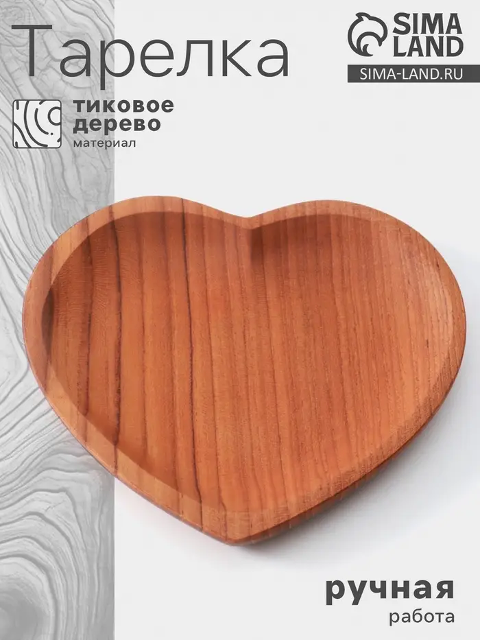 Тарелка «Сердце», 16×16×2 см, тиковое дерево