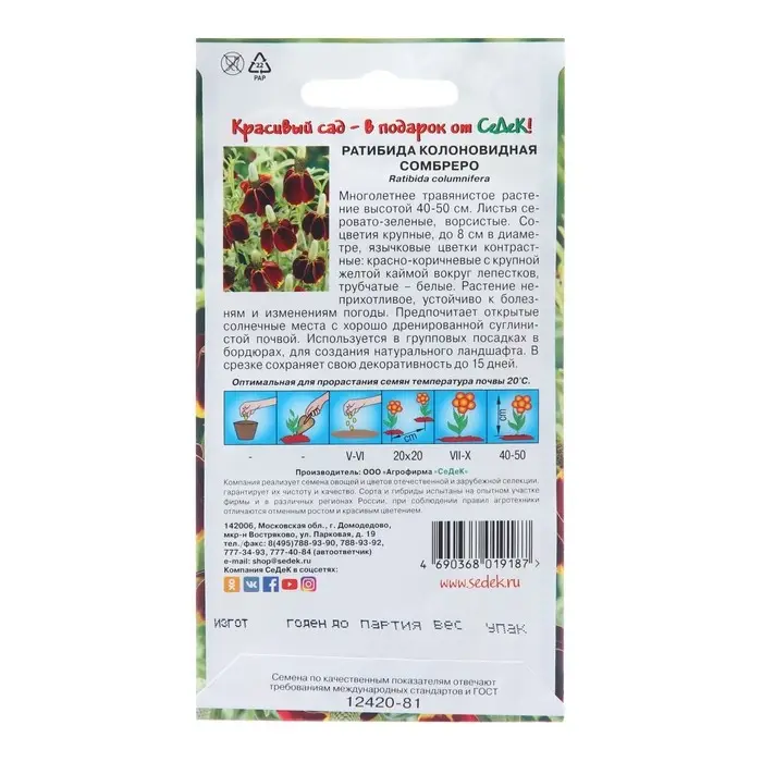 Семена цветов Ратибида "Сомбреро", 0,1 г