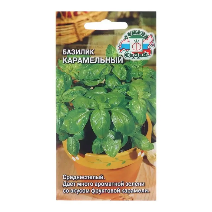Среднеспелый (45-65 дней) сорт для выращивания через рассаду и посевом в грунт. Растение среднерослое, раскидистое. Лист среднего размера, темно-зеленый с серебристым оттенком, гладкий, с гладким краем листа. Аромат сильный, со специфическим запахом фруктовой карамели. Масса одного растения 250-300 г. Урожайность зелени до 3,3 кг/м2. Ценность сорта: высокая урожайность, отличные вкусовые качества. Обладает бактерицидным действием, применяется при метеоризме, при болях в желудке, воспалениях мочевого пузыря, лечения ран, в виде отвара при кашле. Рекомендуется для употребления в качестве салатной зелени в свежем и сушеном виде, пряно-вкусовой добавки в кулинарии и при консервировании.