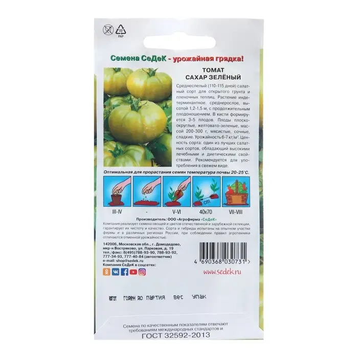 Семена Томат "Сахар зелёный", 0,1 г