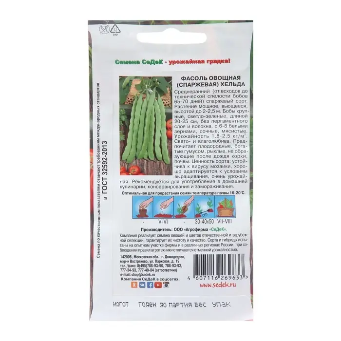 Семена Фасоль "Хельда" спаржевая, 5 г