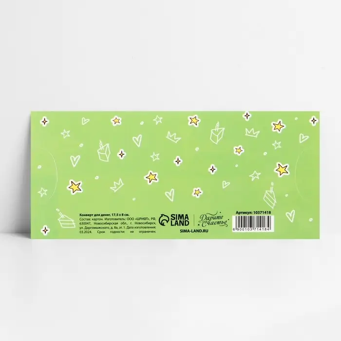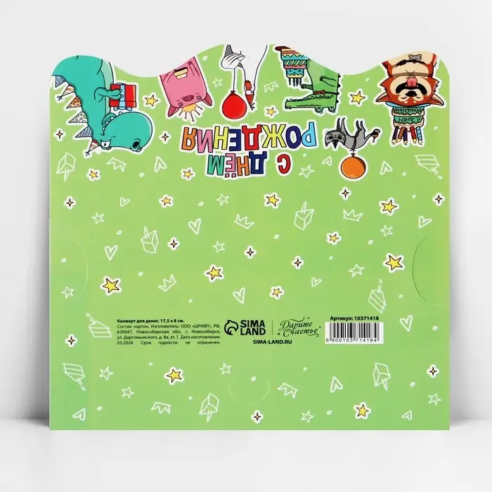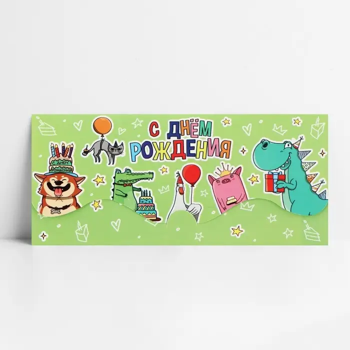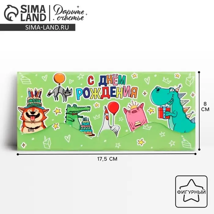 Конверт для денег фигурный «Динозавр: С Днём рождения», весёлый, 17.5 х 8 см