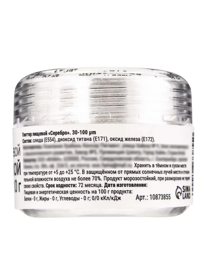 Глиттер пищевой КондиМир "Серебро", 10 г
