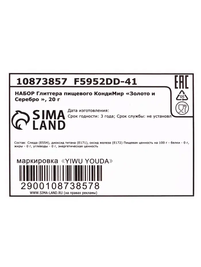 НАБОР Глиттера пищевого КондиМир "Золото и Серебро ", 20 г