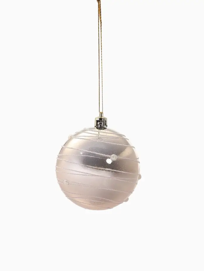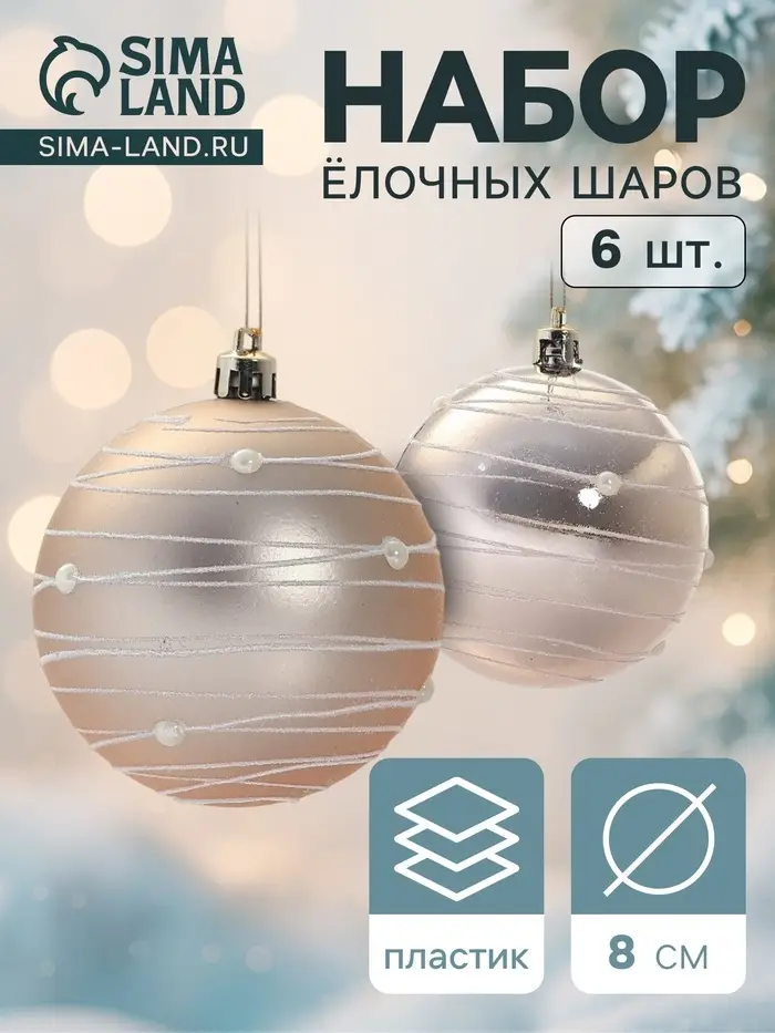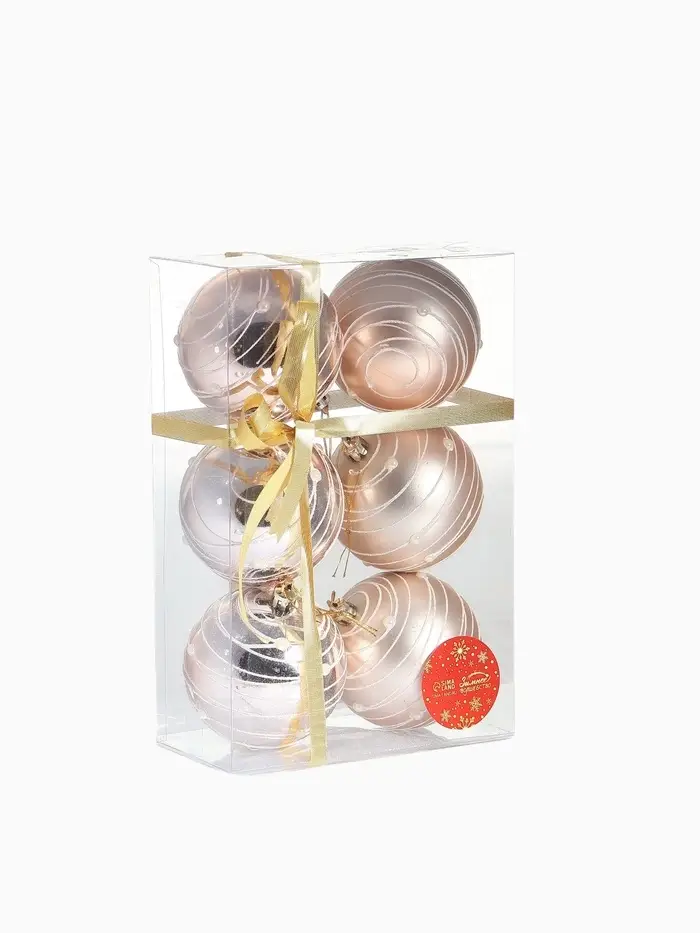 Новогодние шары «Жемчужный орион» — это праздничный декор для тех, кто ценит изысканность и светлые оттенки в оформлении ёлки. Набор включает 6 пластиковых игрушек диаметром 8 см в розово-золотистой гамме с рисунком, выполненных в стиле новогоднего барокко, ар-деко и шебби-шик. Это решение для создания зимнего торжества с акцентом на элегантность и уют.