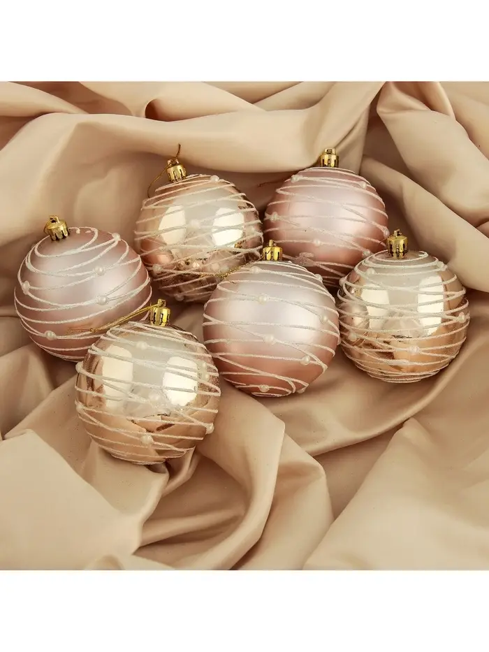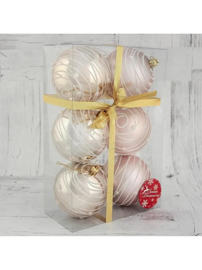 Ёлочные игрушки «Жемчужный орион», шары новогодние, d=8 см, набор 6 шт., розовый/золотистый