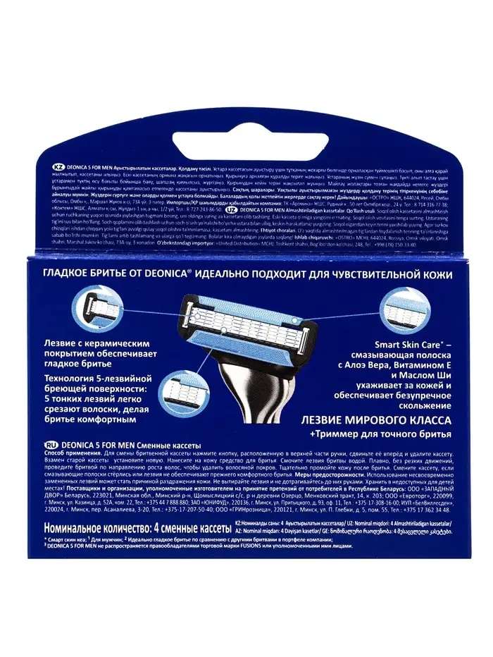 Сменные кассеты DEONICA 5 FOR MEN , 4 шт