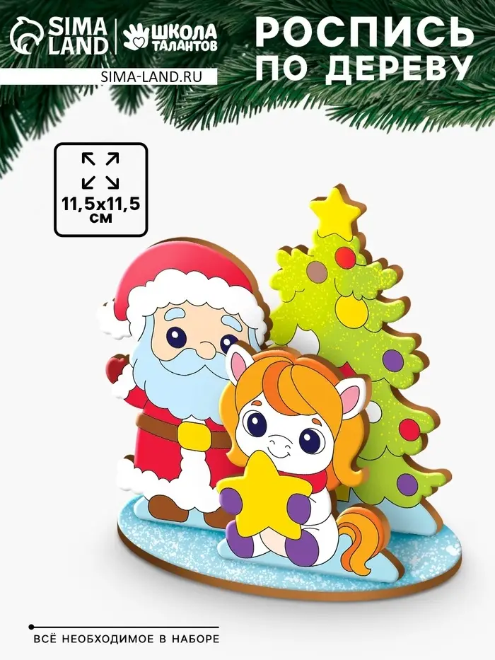 Заготовки для творчества.Роспись по дереву "Лошадка и Дед Мороз" З5542