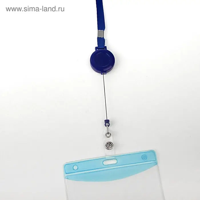 Карабин для бейджа, с держателем-рулеткой, на кнопке, синий
