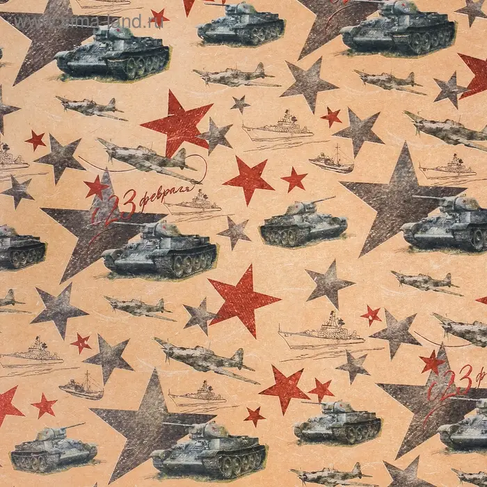 Бумага упаковочная крафтовая «Танки», 50 х 70 см
