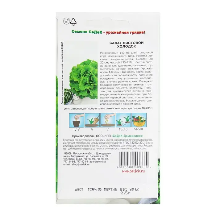 Семена Салат "Бутерброд" листовой, 0,5 г