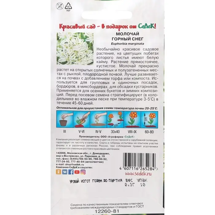 Семена цветов Молочай "Горный снег "0.2 г