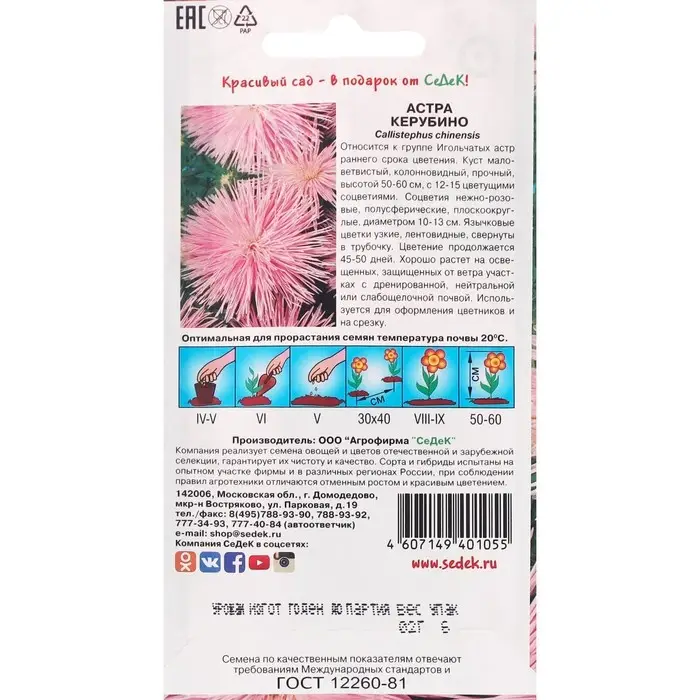Семена Цветов Астра СИРИНГА Розовый Перламутр, 0,1 г