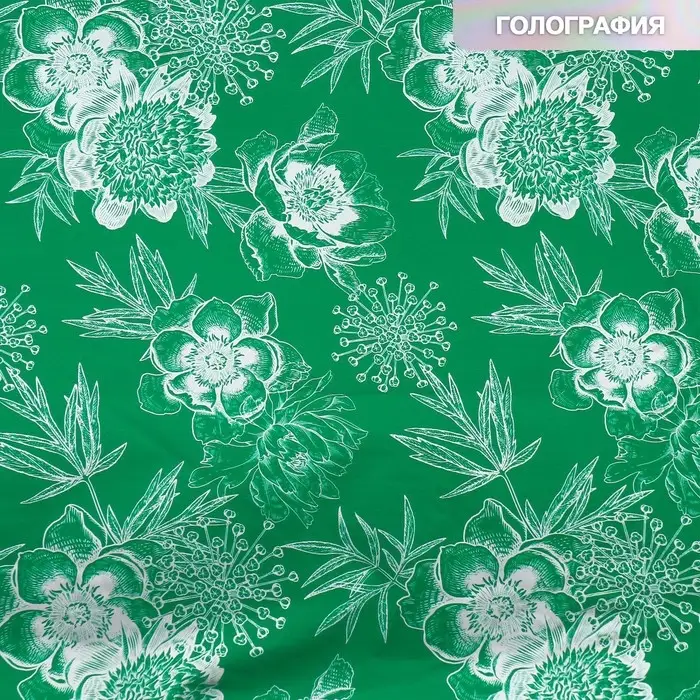 Плёнка упаковочная с голографией «Серебряные цветы» , 100 х 70 см