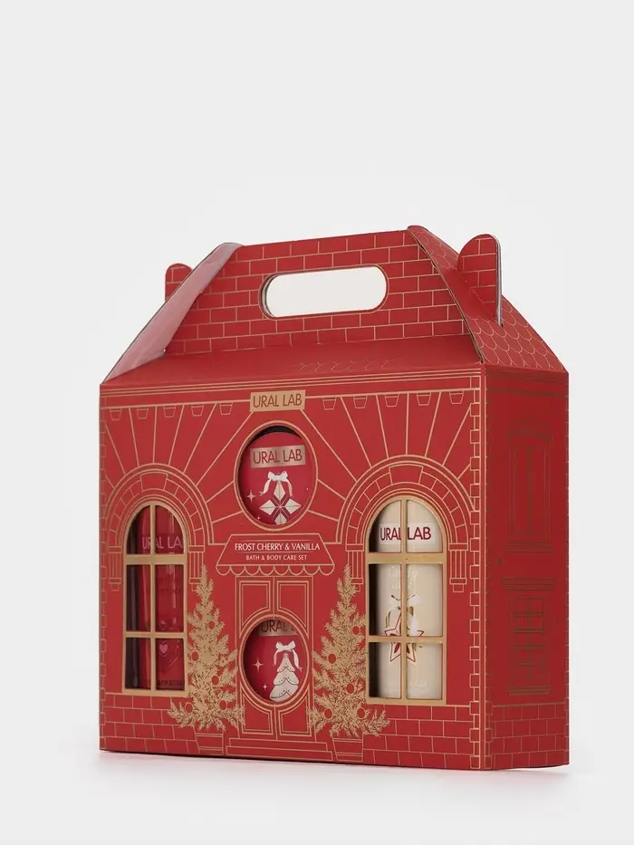 Подарочный набор новогодний в коробке дом: гель для душа 2 шт., соль и масло для душа, URAL LAB