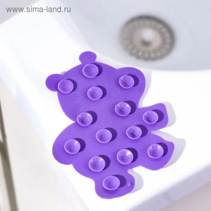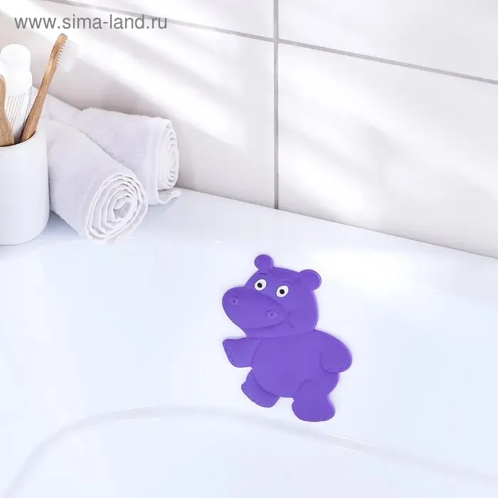 Мини-коврик для ванны Доляна «Бегемотик», 12×13 см, цвет фиолетовый