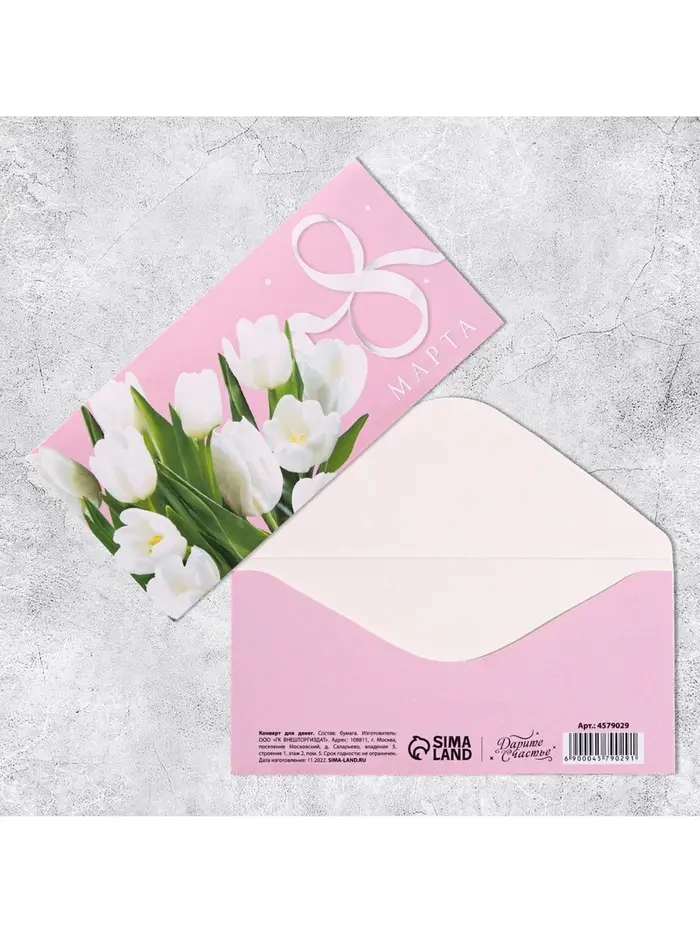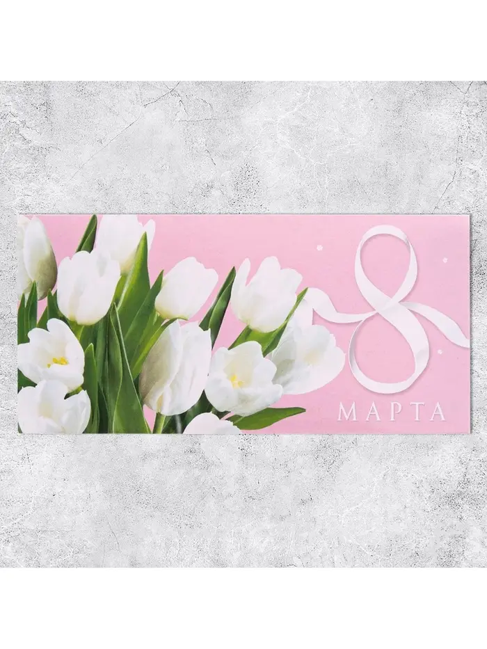 Конверт для денег «8 марта» белые тюльпаны, 16.5 х 8 см