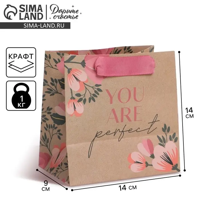 Пакет подарочный крафтовый квадратный, упаковка, «Perfect», 14 х 14 х 9 см