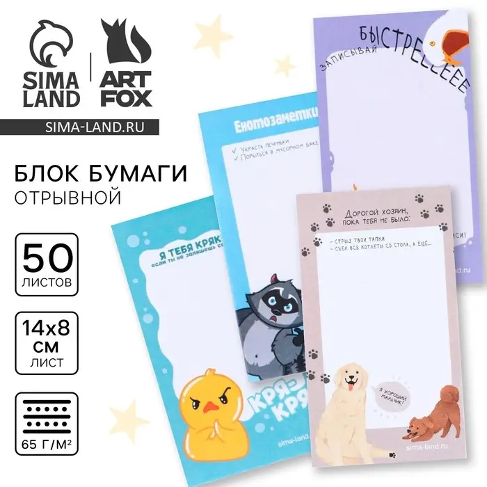Блок для записей с отрывными листами 140 х 80 мм, 50 л МИКС