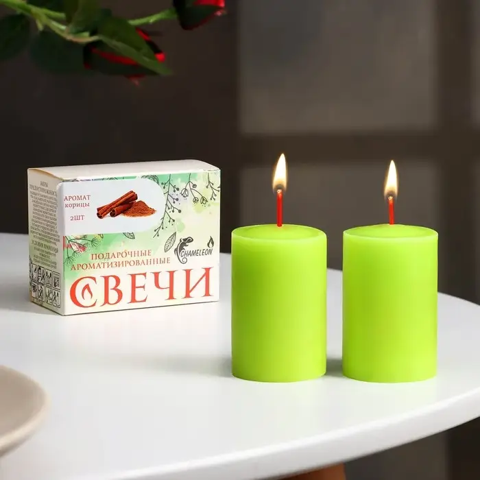 Набор свечей-столбиков 2 шт, 4х6 см, корица
