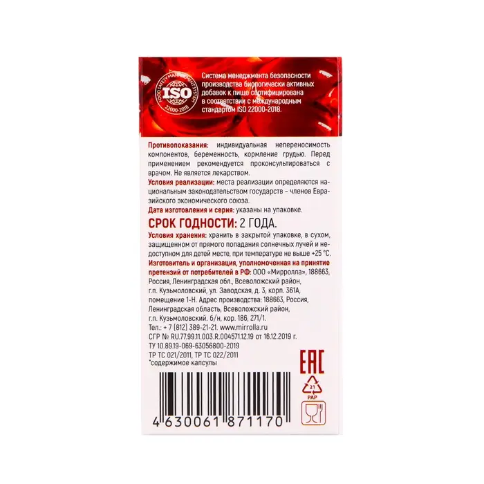 В упаковке содержится 30 капсул, каждая из которых содержит 400 мг витамина Е. Препарат не является лекарственным средством, перед применением рекомендуется проконсультироваться со специалистом.
