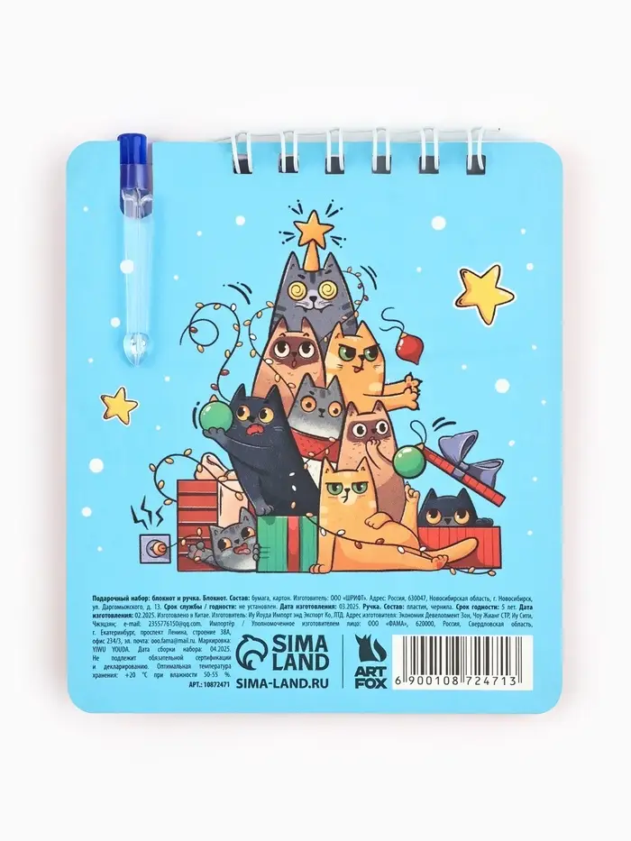 Набор: блокнот и мини ручка, 32 листа "Котики"