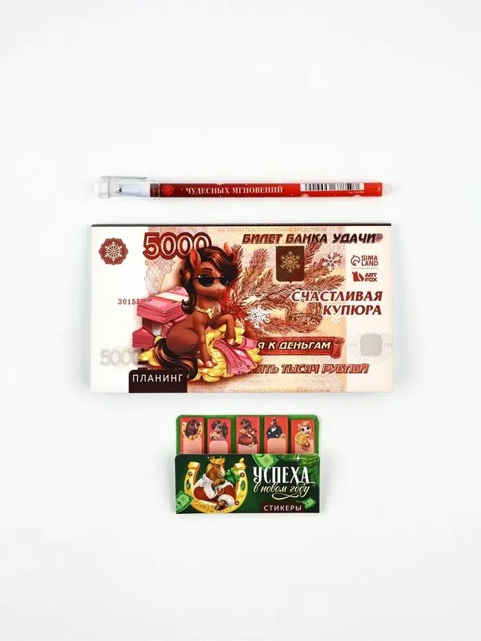 Подарочный набор: Стикеры планинг и ручка "Купюра"