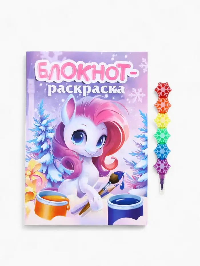 Подарочный набор: блокнот-раскраска и разноцветный карандаш "Лошадка"