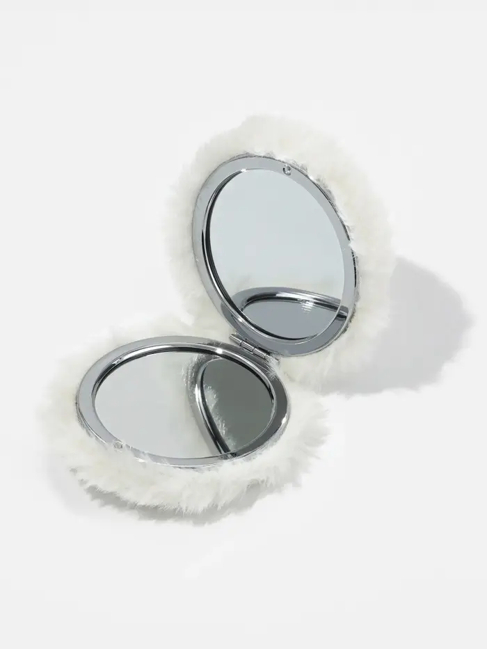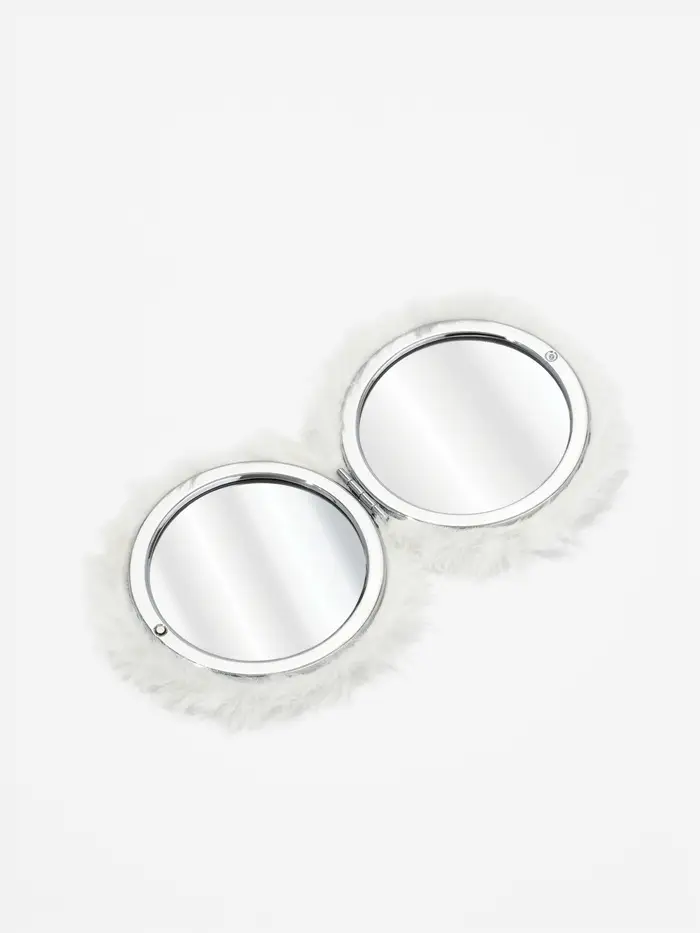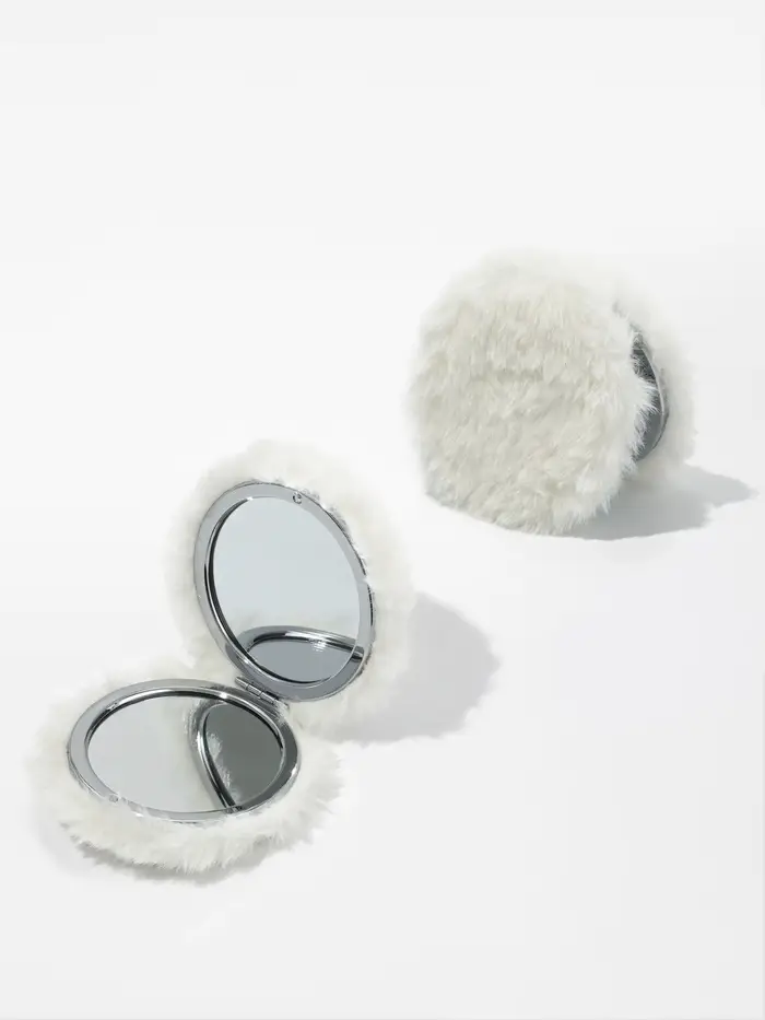 Зеркало складное «Мех», d=8 см, с увеличением, с искусственным мехом, белое
