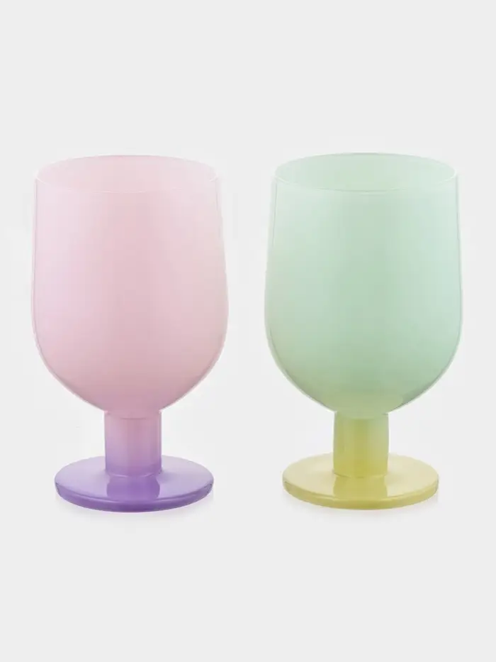 Бокалы для вина— это лёгки и современный выбор. Их компактный размер и мягкие цвета — зелёный или розовый — добавляют сервировке свежести и лёгкости.