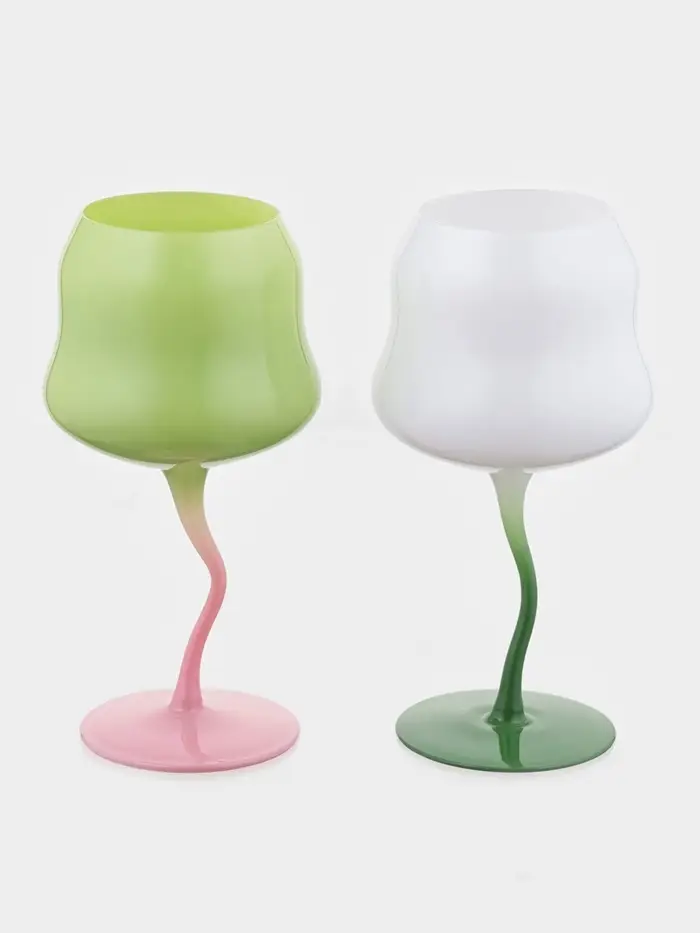 Бокалы для вина Pint, 465 мл, 8×19 см, набор 2 шт., стекло, зелёные, белые