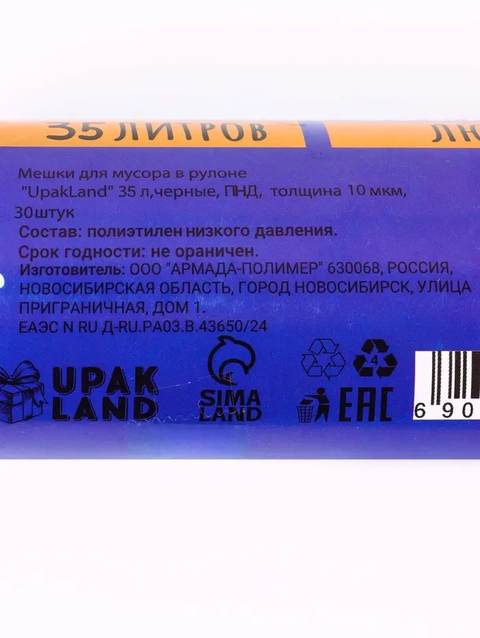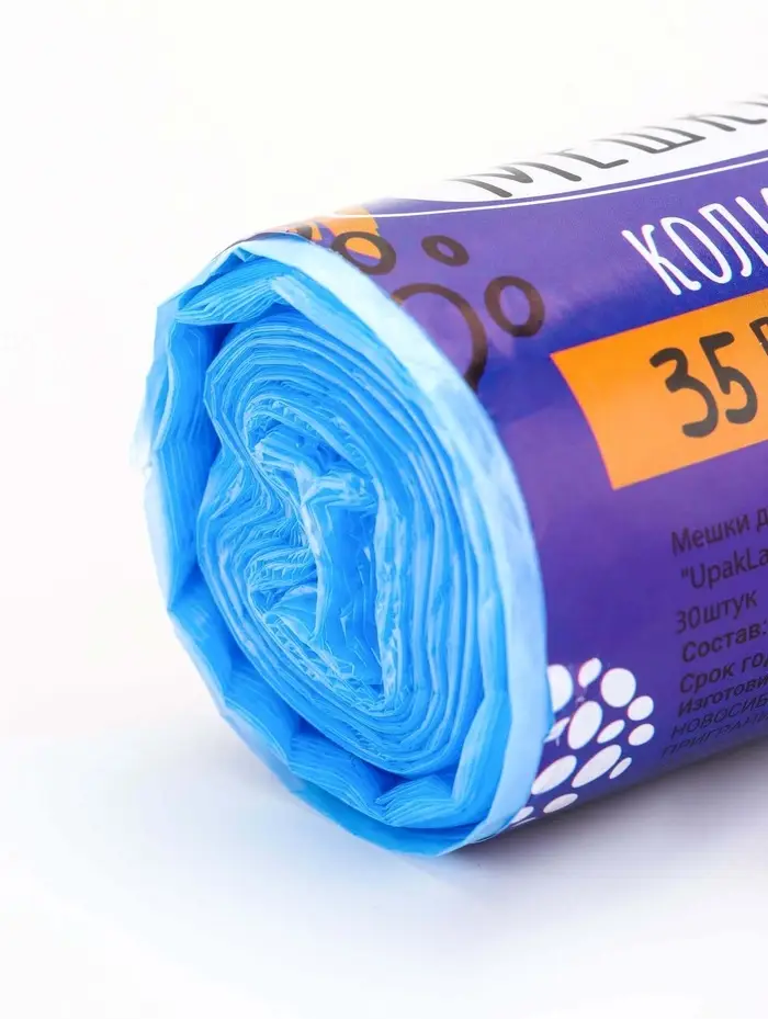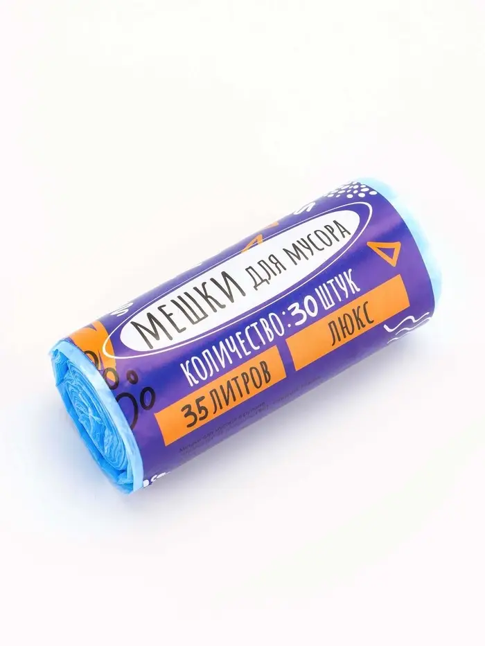 Мешки для мусора 35 л, ПНД толщина 10 мкм, 30 шт в рулоне, цвет синий