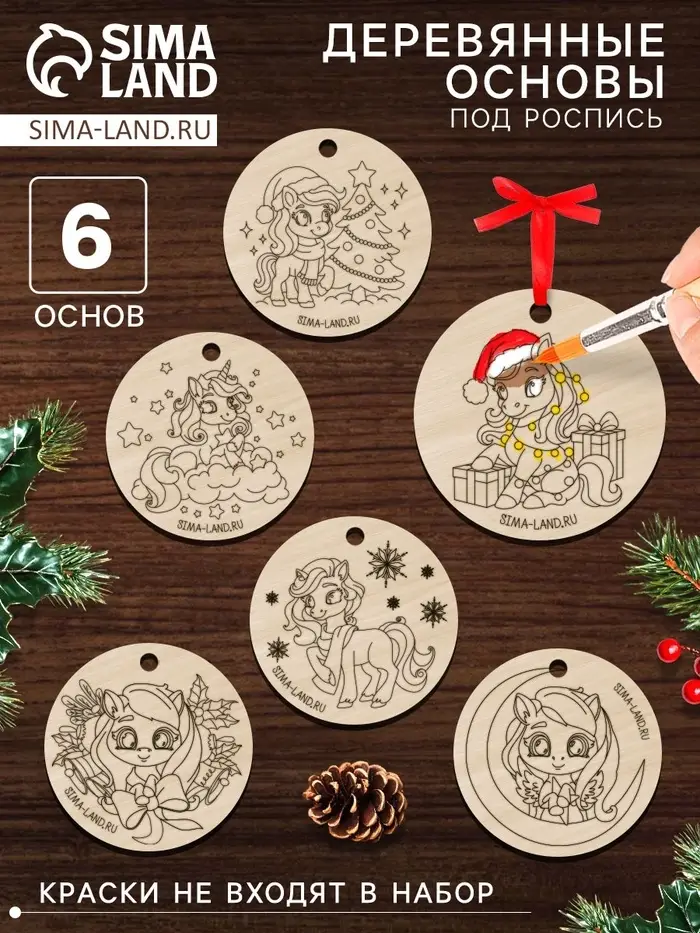 Заготовки для творчества.Набор подвесок "Новогодняя лошадь" 6 шт З5544