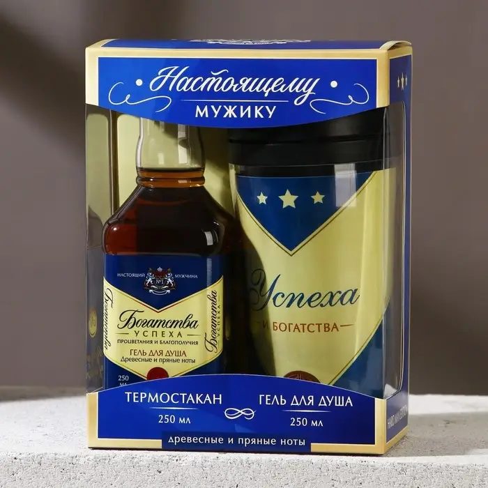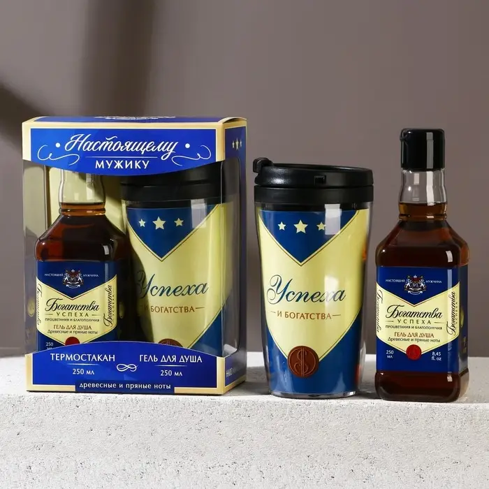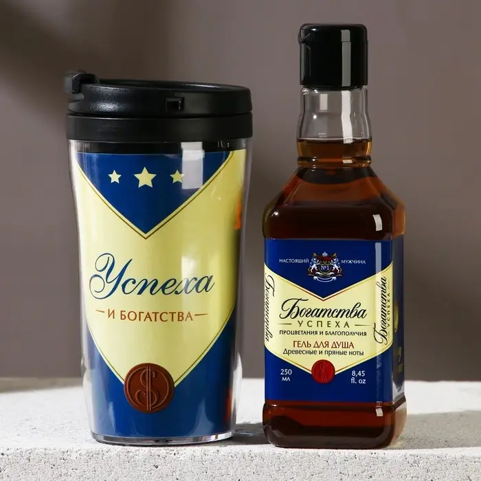 Подарочный набор ЧИСТОЕ СЧАСТЬЕ «Настоящему мужику!»: гель для душа виски 250 мл и термостакан 250 мл