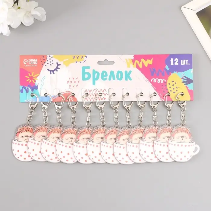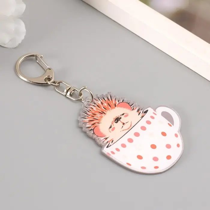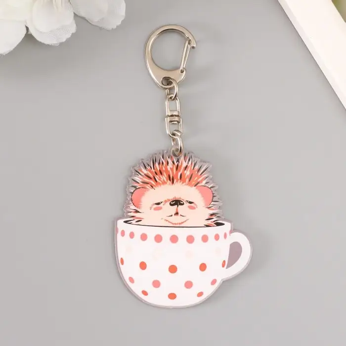 Брелок акрил "Ёжик в кружке в горошек" 4,8х5,7 см